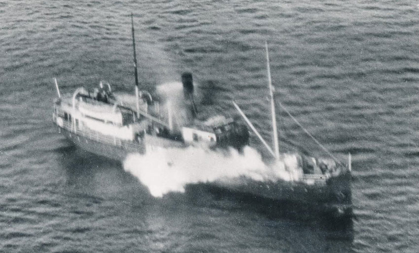 Den 8. januar 1945 ble D/S Fusa senket av britiske fly i Korsfjorden utenfor Bergen, og sju personer omkom. Foto: Dykkings arkiv