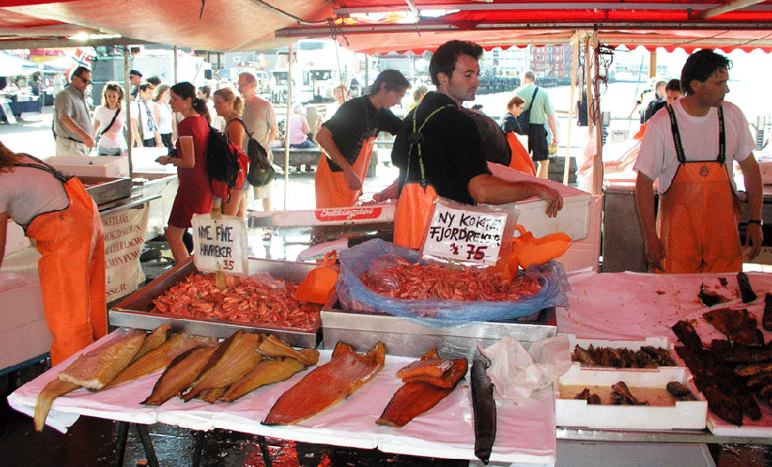 – Prisene på fisketorget i Bergen er et ran, sier en selger av skalldyr på svartebørsen i Bergen til NRK. Foto: Christian Skauge