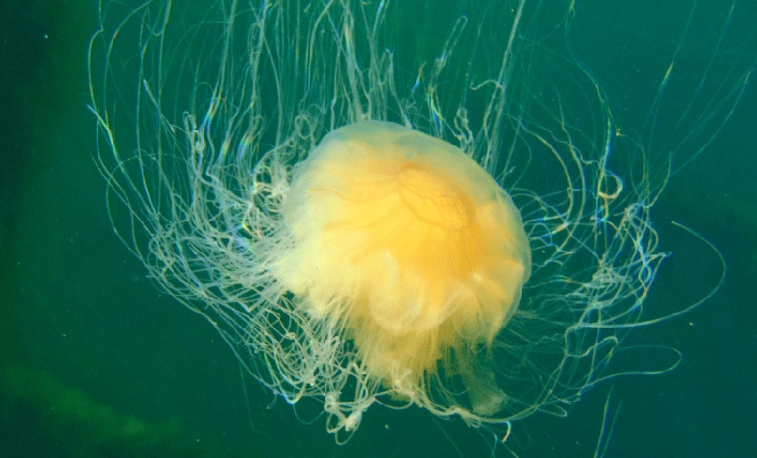 Brennmaneten (Cyanea capillata) kan bli opptil to meter i diameter, og er dermed den største maneten i verden. Tentaklene kan bli over 30 meter lange. Foto: Tor André Johannessen