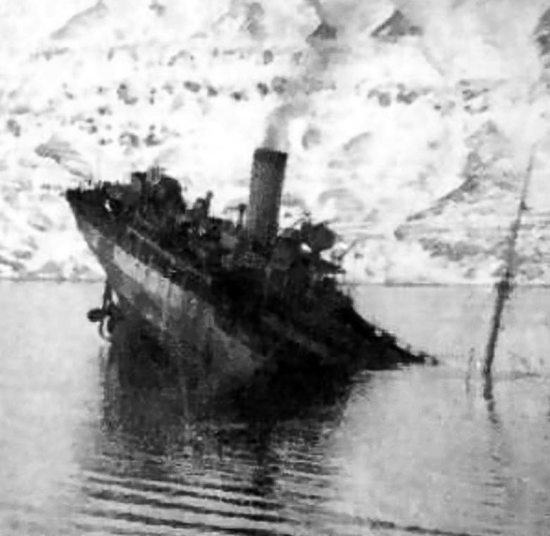 Slik så det ut da El Grillo sank etter et tysk luftangrep i februar 1944.