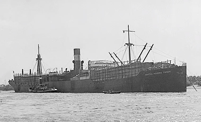 Den 10. april 1940 ble D/S Martha Henrik Fisser truffet av en torpedo fra britiske jagere, og sank på 15–25 meters dyp. Foto: Dykkings arkiv