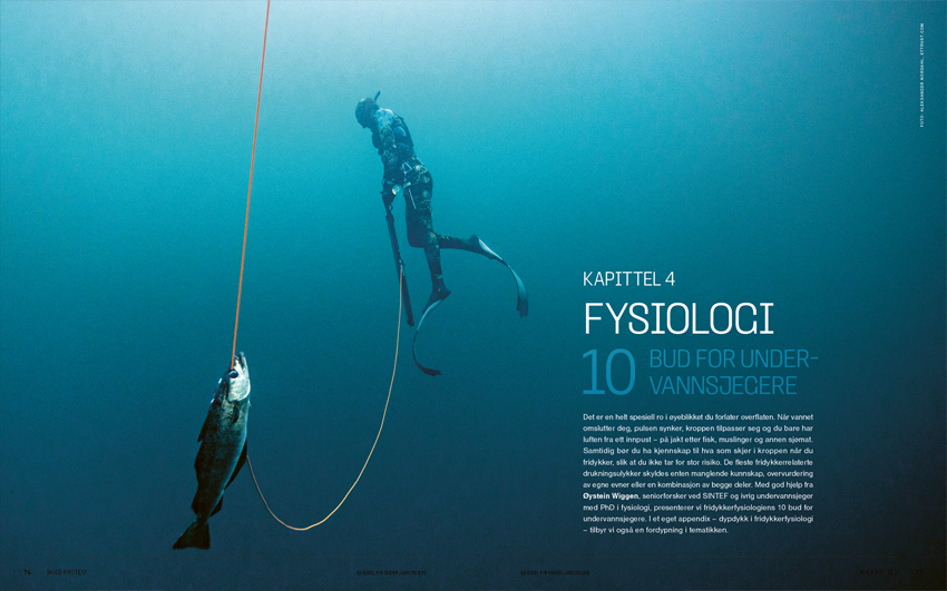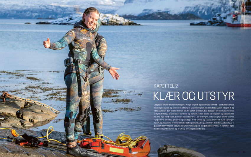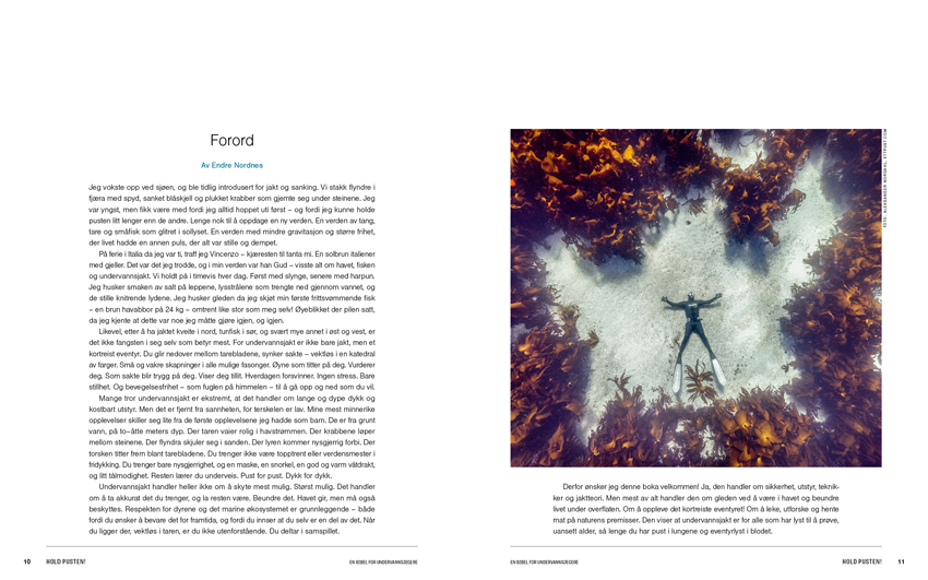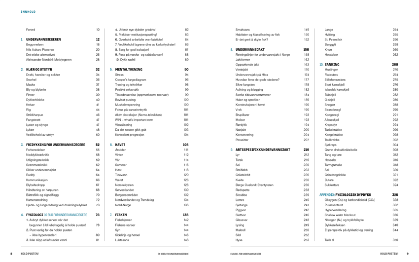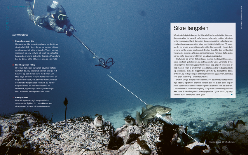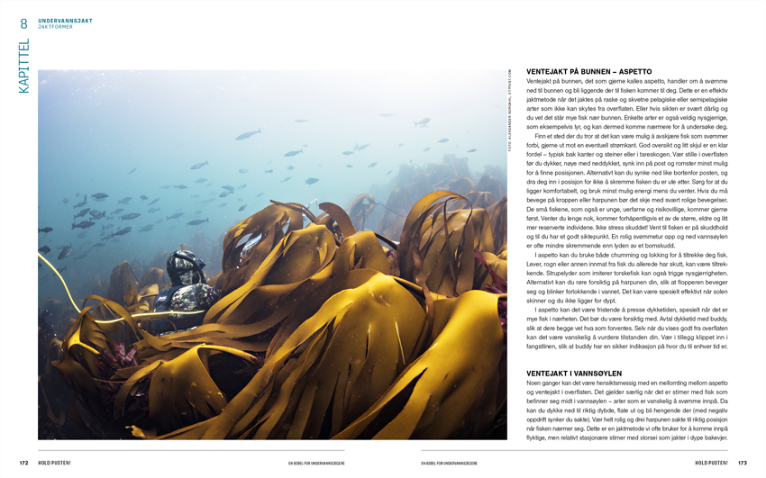 På elegant vis veksles det mellom å forklare undervannsjakt og å ta deg med ut på jakt – mellom læring og inspirasjon. Her kan du bla i boken:
