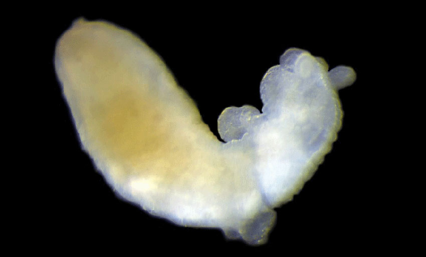 – Etter å ha sortert seg gjennom seks liter sand i en lupe kunne en strålende fornøyd Dr. Alexander Martynov fra universitetet i Moskva konstatere at han hadde funnet ett enkelt individ. Den målte hele 1,2 mm, så det var nærmest en umulig oppgave – en han klarte det likevel, sier en glad nakensnegleforsker.
